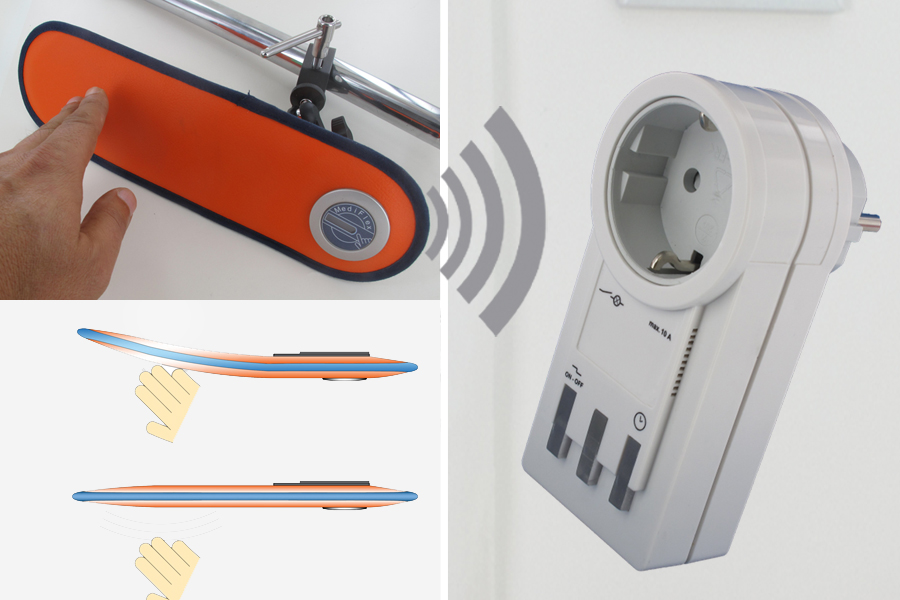 Der MediFlex sendet per Funk auf den Funk-Empfänger, der in eine 230V Steckdose eingesteckt wird.