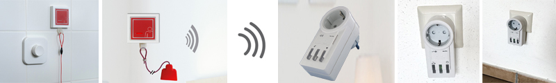 - Funk-Set: 1x Zug-/Ruf-Taster und Steckdosen-Alarm-Empfänger