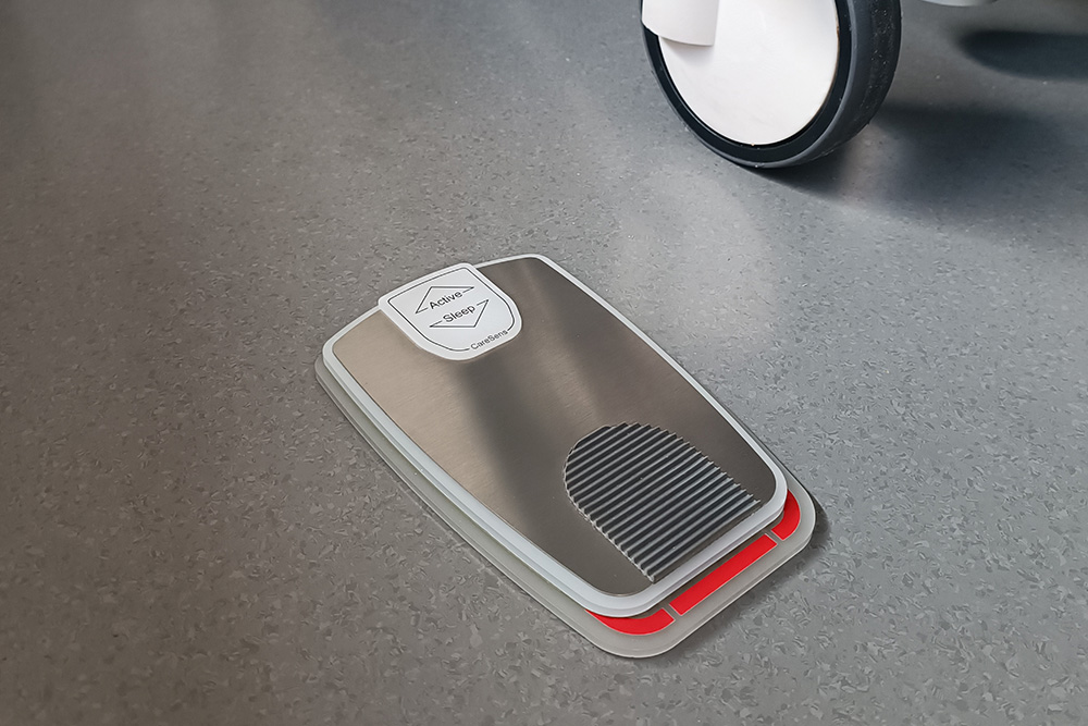 Die rutschfeste Unterseite des CareSens® unterstützt das bequeme Aktivieren/Deaktivieren durch Bestätigung des Fuß-Schiebeschalters.