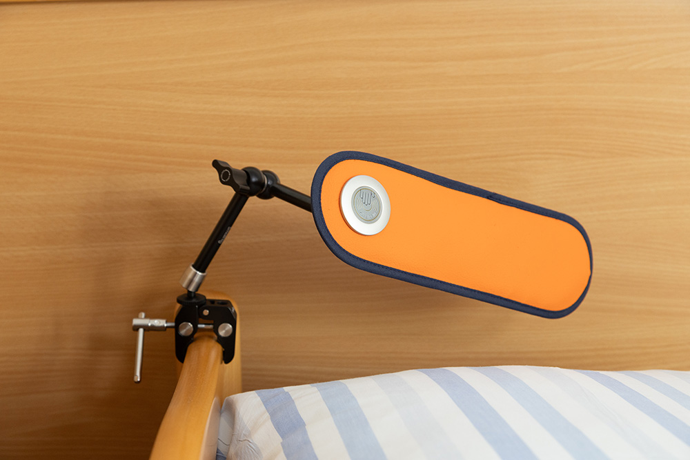 In oder an einem Bett oder z.B. einem Rollstuhl wird der MediFlex über optional erhältliche bewegliche Arme und Halterungen so platziert, dass ein Ruf mit der entsprechenden Extremität leicht ausgelöst werden kann, auch berührungslos.